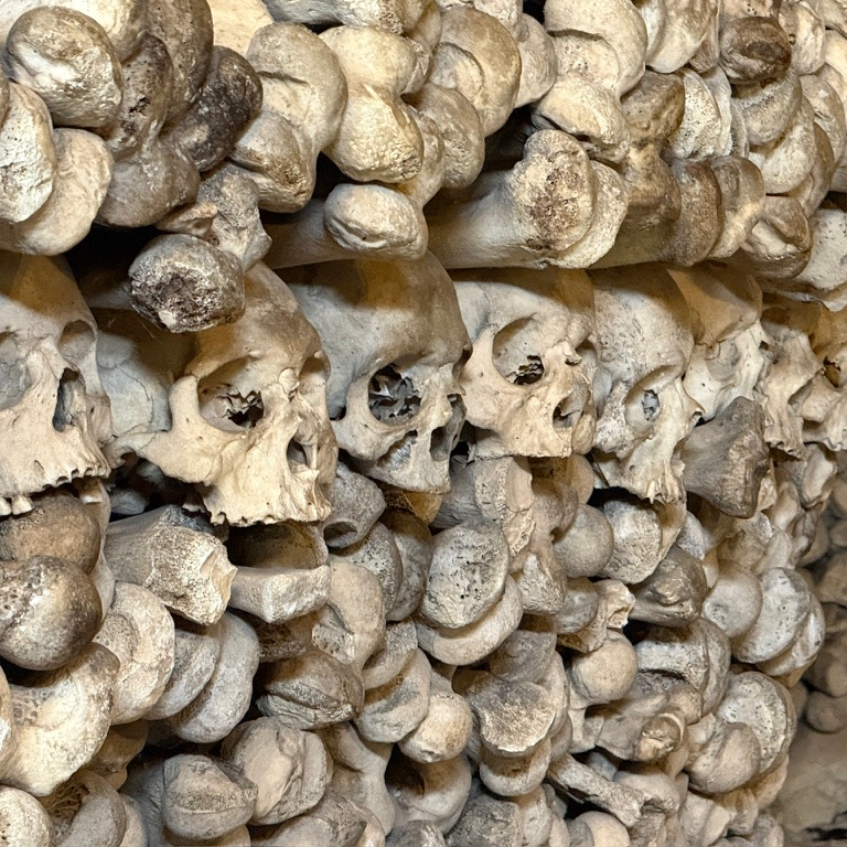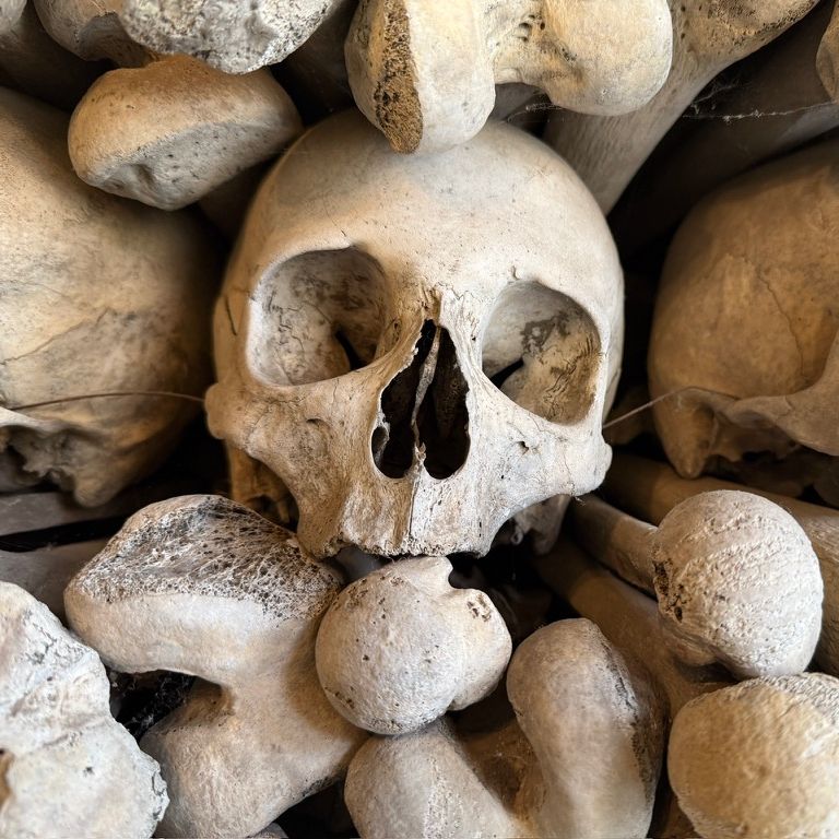 Kaplica Czaszek jest centrum modlitwy za dusze cierpiące w czyśćcu. W katolickiej tradycji modlitwa za zmarłych nie jest tylko wzruszającym zwyczajem. Wyrasta z przekonania, że dusze potrzebujące oczyszczenia mogą liczyć na duchowe wsparcie Kościoła. To konkretna forma pamięci o zmarłych i duchowej pomocy dla tych, którzy oczekują pełni spotkania z Bogiem. W Kaplicy Czaszek ta prawda wybrzmiewa szczególnie mocno. Spoczywają tu ludzie anonimowi, pozbawieni należnego nazwania ich bólu i tragedii ich własnym imieniem, ofiary epok, w których człowiek znikał masowo i bez śladu. W Kaplicy Czaszek modlitwa nie jest dodatkiem do zwiedzania. Jest najwłaściwszą odpowiedzią. Jeśli nie wiemy kim byli ludzie których szczątki spoglądamy - tym bardziej musimy powierzać ich Bożemu miłosierdziu.